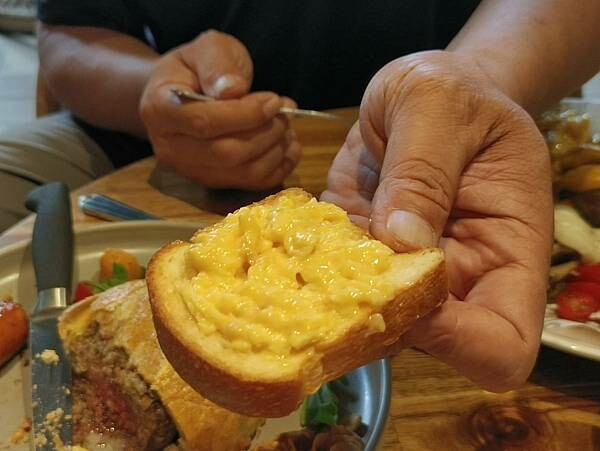 有焦糖厚培根/匈牙利香腸/手打牛肉漢堡排/炒蛋/炒菇/炒薯塊/酪梨/燻鮭魚/節瓜/南瓜/牛番茄/生菜/香料起司/特製酸種麵包/自製希臘優格/油封蔬菜/焦糖布蕾