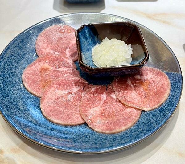 烤後的薄片牛舌,加上洋蔥丁,