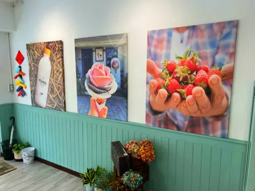 拍完大招牌再到旁邊的巨大冰淇淋一起合照,擺放的是招牌的牛奶口味,吃起來牛奶味特別香濃