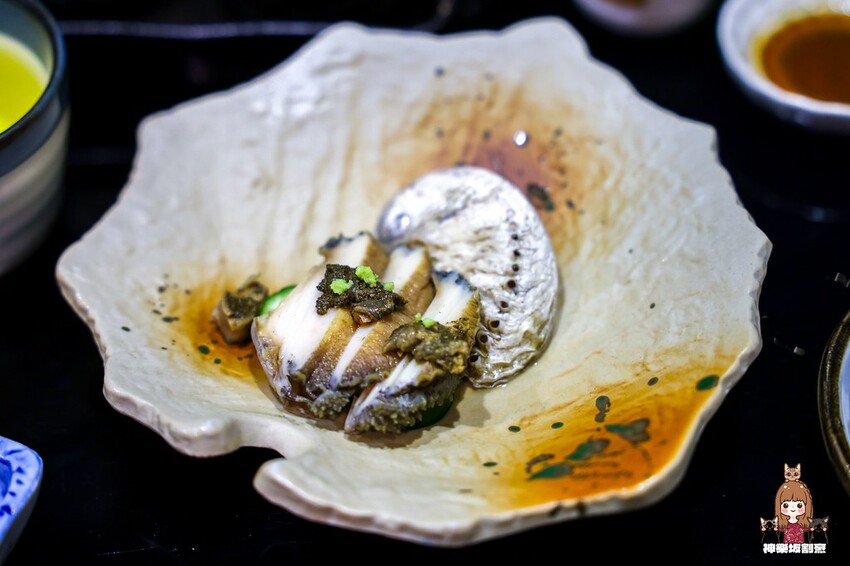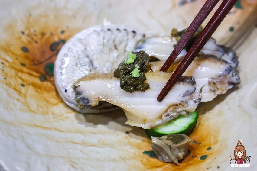 師傅將鮑魚的肝作成泥狀,搭配山葵一起入口,濃郁醇厚又帶有山葵的辛香提味,真好吃!