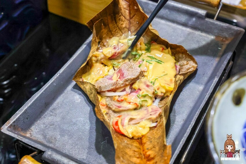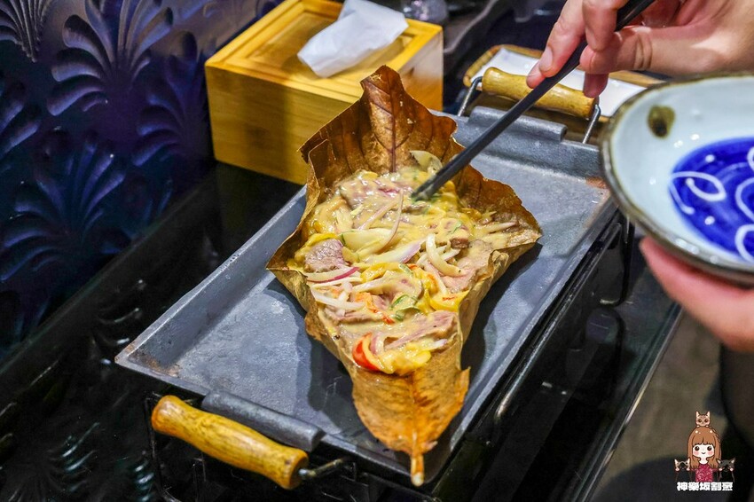 特製的味噌胡麻醬,味道極濃,略帶厚度的牛小排,入口Q嫩好吃,邊吃還能感受到朴葉迷人的香氣。