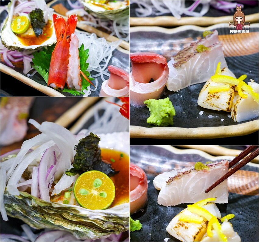 依據季節會有所變化的食材,嚴選進口日料的刺身盛和,這天吃到熊本的生蠔、台灣龜山島紫膏葡萄蝦、日本九州真鯛、鹿兒島鰤魚肚和北海道干貝。