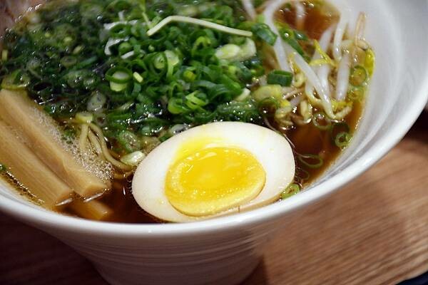 以豆芽菜、黑木耳以及蔥花做搭配,再來一個糖心蛋,真的是很完美的搭配