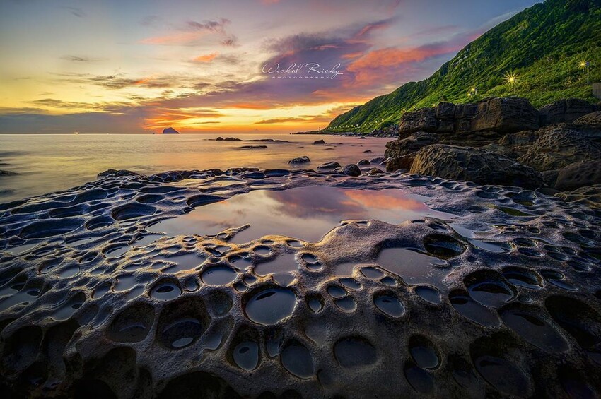 北台灣日出聖地之一的基隆外木山海岸,是從外木山漁港到澳底通村全長大約5公里,經基隆市政府規劃設計為觀光休閒道路的海岸公路。拍日出的熱點則是在「外木山濱海廊帶」,眺望遠方的基隆嶼、,加上台灣東北角的海蝕岩特色海岸和照映著曙光的海水,拍出來的照片都美得很魔幻啊!