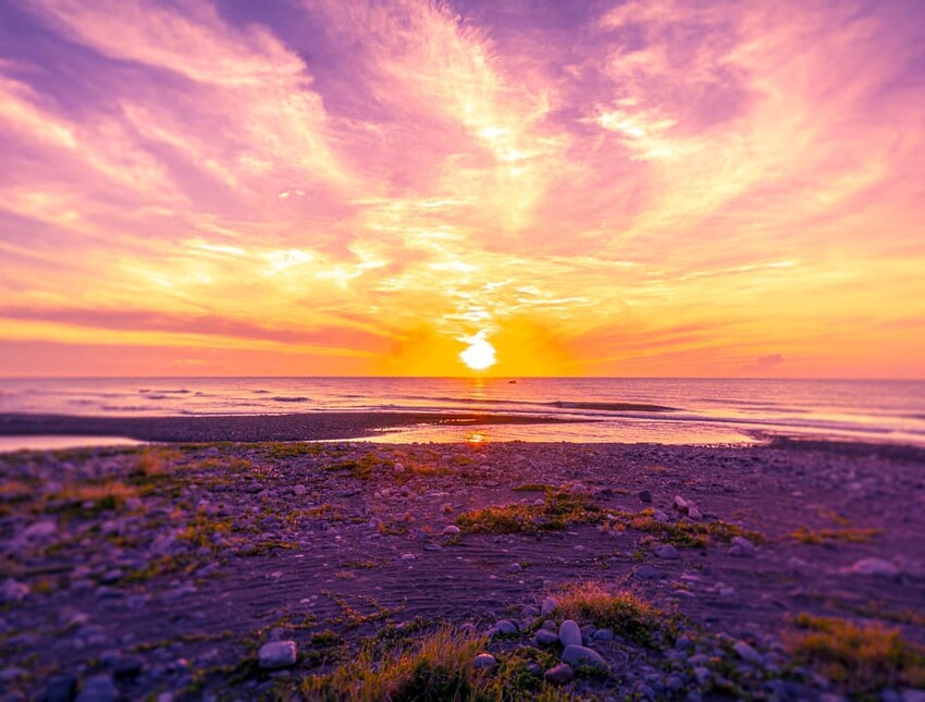 花蓮著名景點-七星潭的絕美海景,當然也很適合賞日出曙光囉!從七星潭風景區一望遼闊的太平洋,建議大家要從日出前半小時就來,才能從頭到尾好好的欣賞晨曦露臉前後天空雲霞的色彩變幻,以及海面上映照出不同時段日出美景的曙光光線。