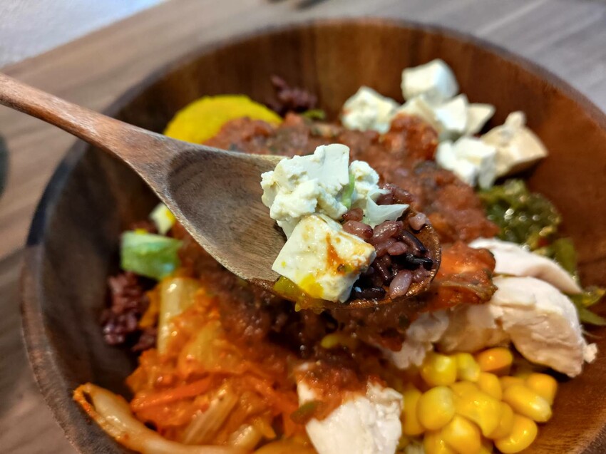 主食 : 紫米+生菜蛋白質 : 雞肉
