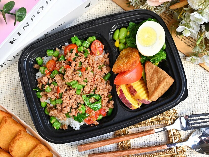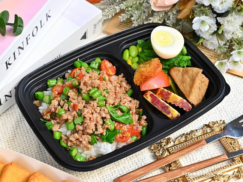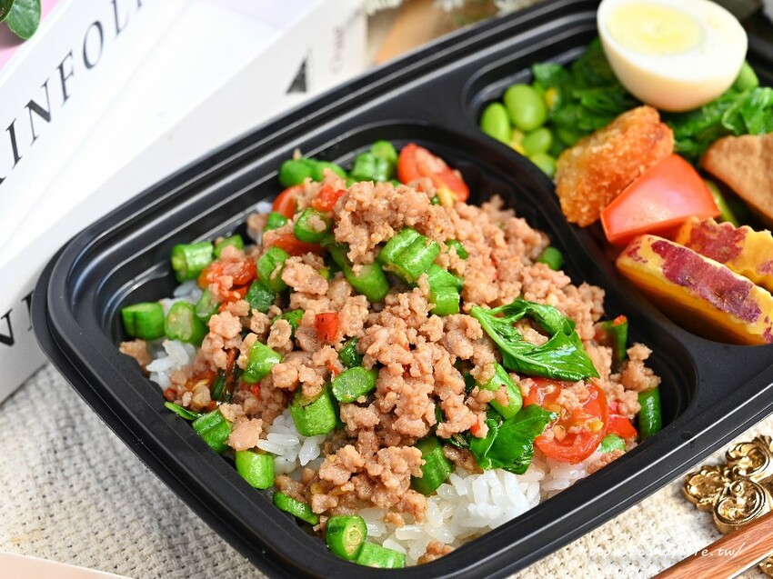 又是一道非常下飯的餐盒,志氣雞飯除了打拋雞飯,還有打拋豬飯,打拋豬飯採用溫體豬絞肉,搭配、小番茄、長豆丁及九層塔下去拌炒,一樣香氣超迷人