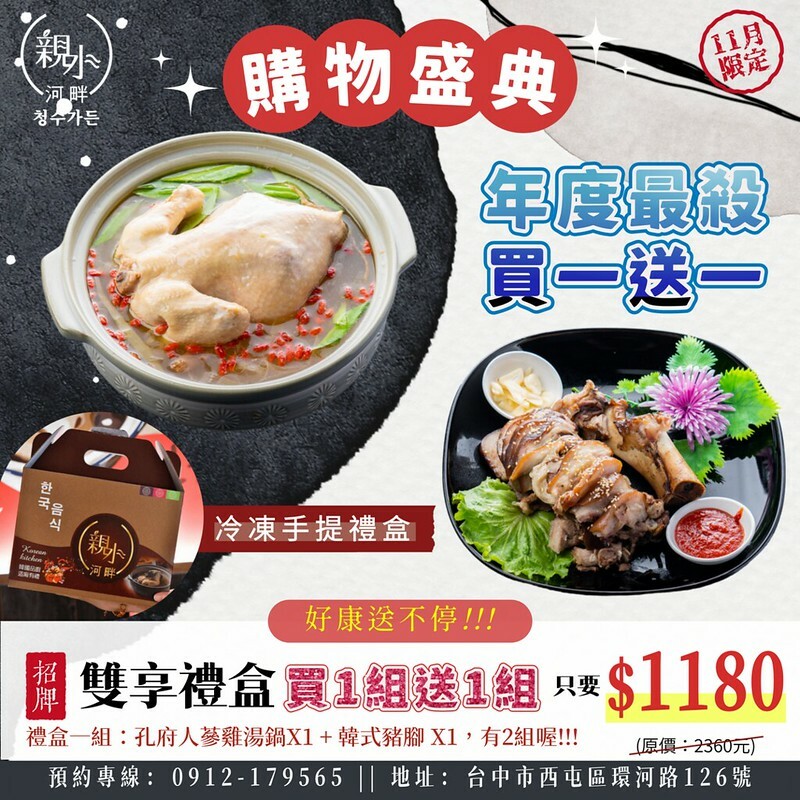 由於親水河畔也有販售店內餐點的冷凍商品(可在冷凍食品可在qin-shui.com下單),11月另有其他買一送一或買一送二的優惠活動,滿$2000再享免運配送🔥