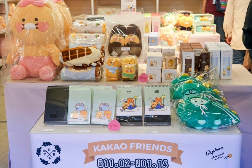 ▼充滿濃濃聖誕氣息的【𝗞𝗔𝗞𝗔𝗢𝗙𝗥𝗜𝗘𝗡𝗗𝗦】快閃店,共有精選超過1000項人氣熱銷商品,及全新KAKAO FRIENDS周邊於現場快閃販售,包含春植的想像之旅-貼紙組、2024桌曆、Babydreaming玩偶吊飾、JORDY帽T玩偶、森林小屋系列商品,KAKAOFRIENDS可愛到意圖使人荷包大失血啊!