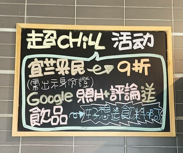 宜蘭縣民➡️只要需出示身份證打九折, Google照片 +評論送飲品一起來超Chill一下~