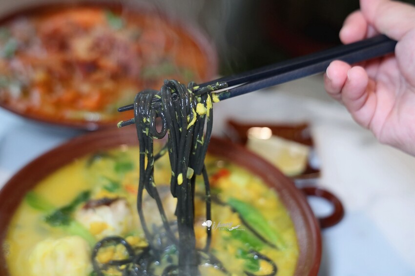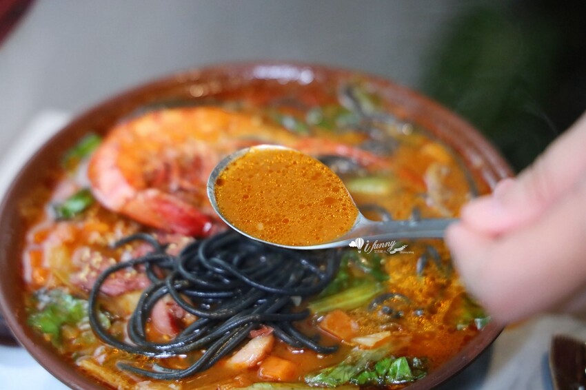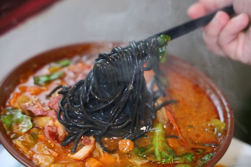 陋室酩神粥府的麵條一律採用墨魚麵,剛吃時覺得不習慣,但越吃越涮嘴,尤其是吸附了湯汁的精華,更是美味升級。