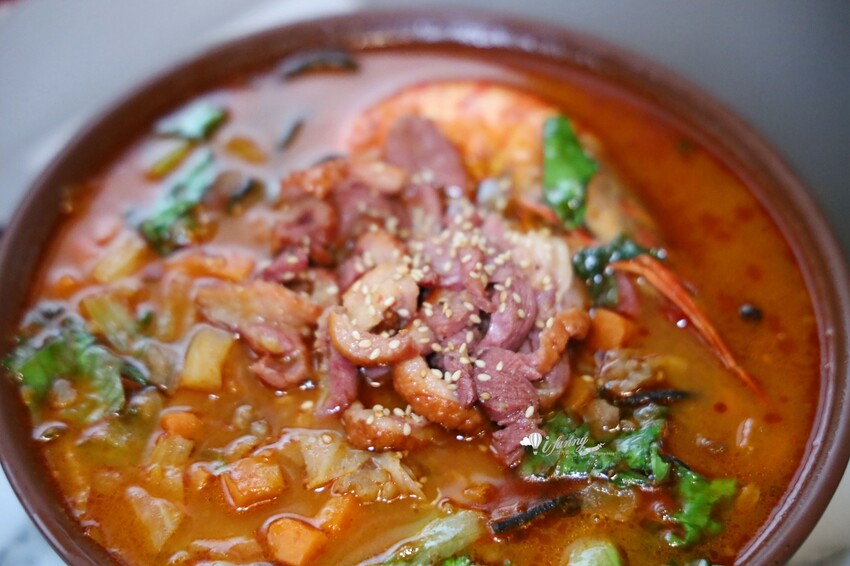 這個微辣湯頭是有辣感的,但越喝越上癮,有牛肉的香,也有蔬菜及海鮮的鮮甜,這個湯頭幾乎喝光光,好好喝。