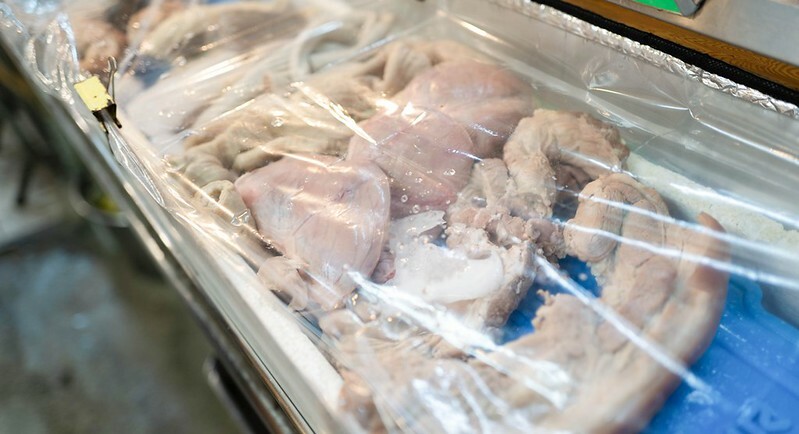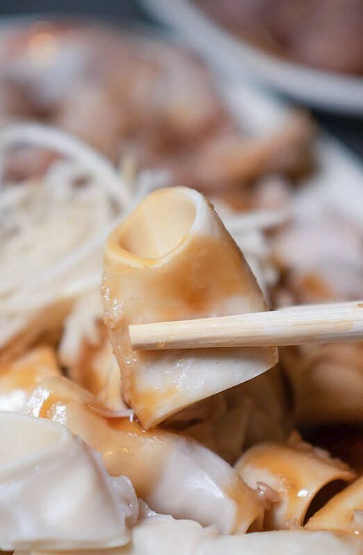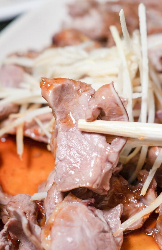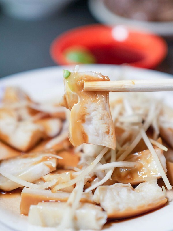 豬眼睛在基隆算是常見的,像賣粿仔湯、米粉湯的多半會有,這裡貼心的是可以讓你選擇要不要見到完整的眼睛,也可以選眼窩附近的肉。其實「豬眼睛」只是看著、聽著可怕,但口感很是脆Q,個人非常喜歡,眼窩旁的肉帶點微筋,像頭骨肉一樣又軟又嫩,可以說是集軟、嫩、脆、綿、糯、彈於一身的黑白切。