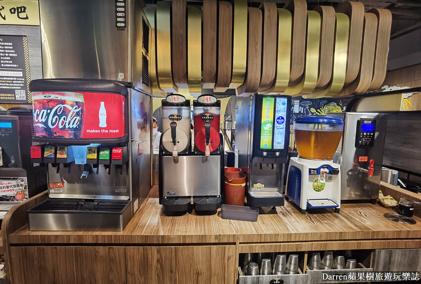 ▼肉次方燒肉吃到飽飲料區,有可口可樂機、冰沙、可爾必思、烏梅汁等等