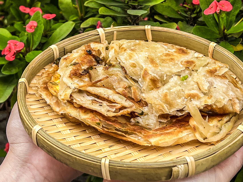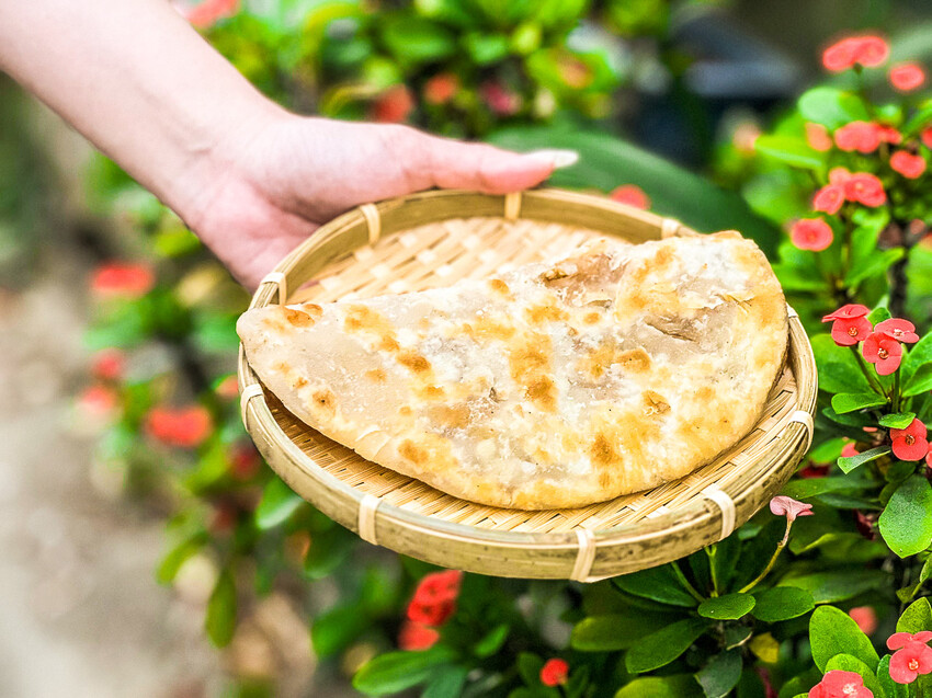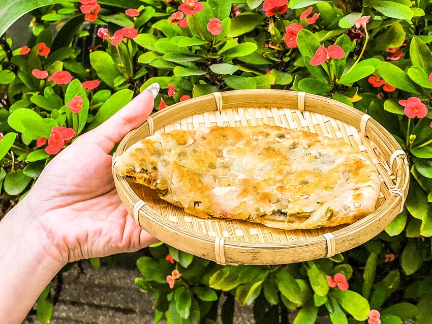 酸辣肉末餅,裡面也是有加酸豆(豇豆),而且還有加肉末,吃起來有肉感香氣,餅身也很紮實有咬勁,而且吃起來也不會油膩呢