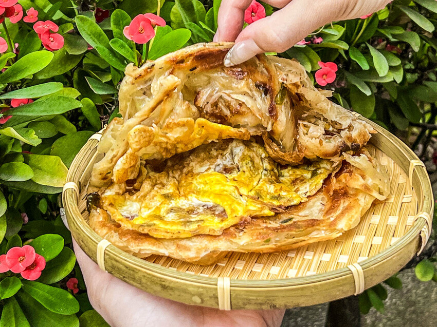 抓餅酸豆蛋,之前看食尚玩家介紹我就很想吃這個,自製的蔥抓餅吃起來很酥脆,然後中間的蛋有加自製的酸豆(豇豆),吃起來很有脆度加上些微的酸辣感,超開胃好吃的!
