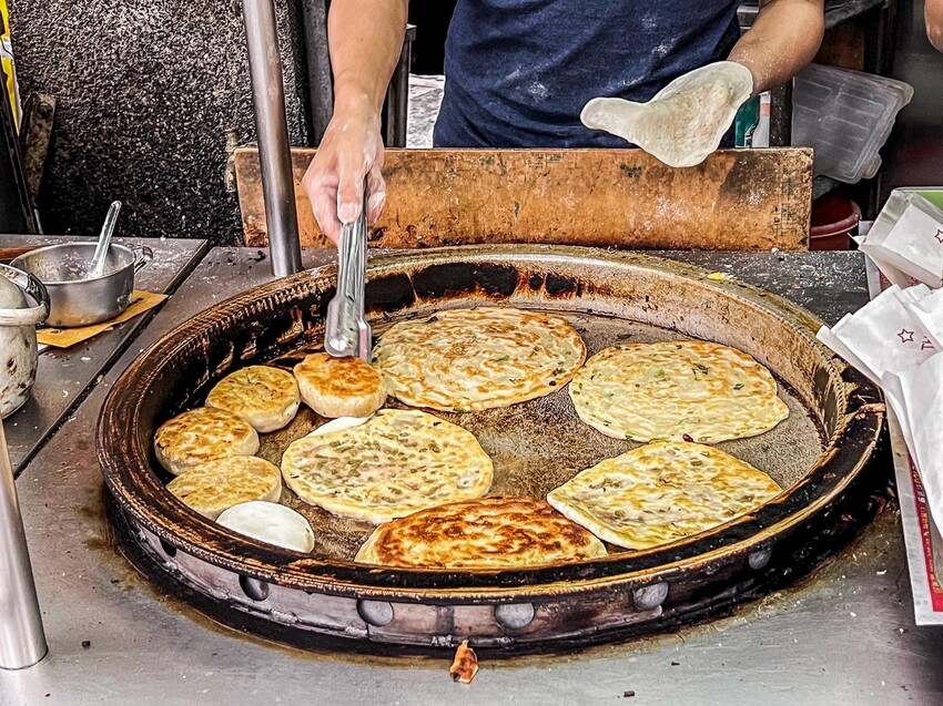 瀟湘園餡餅賣的餅類很多,全部都是手工現做現煎,蔥油餅、餡餅、肉末餅、抓餅、甜餅等等,我是為了酸豆餅來的