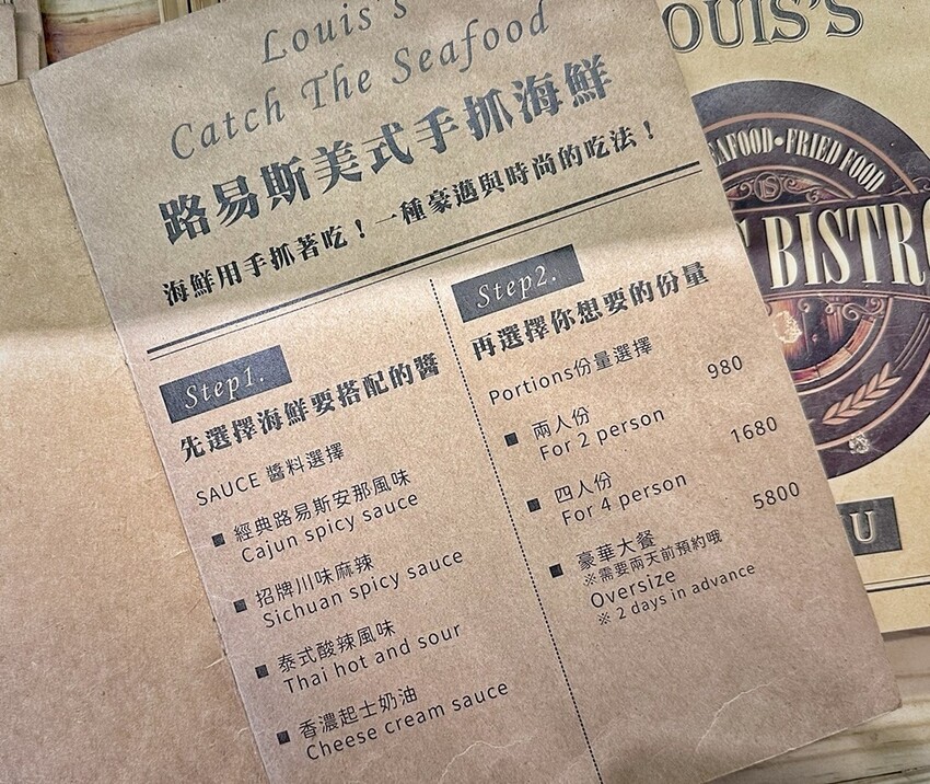 【Louis bistro路易斯手抓海鮮-菜單】