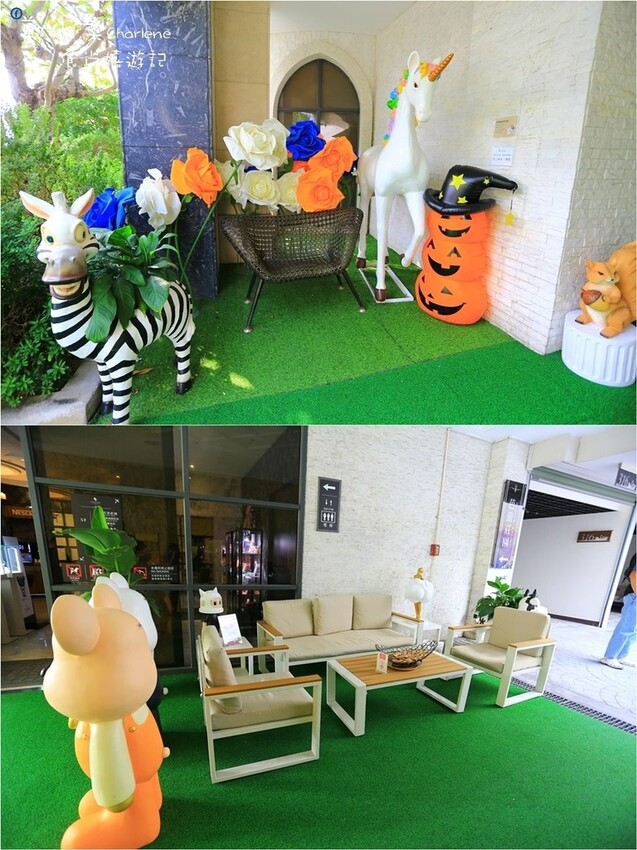 台中芭蕾城堡酒店的戶外公共空間遍植花草樹木,將森林裡的松鼠、