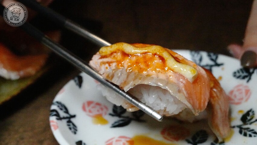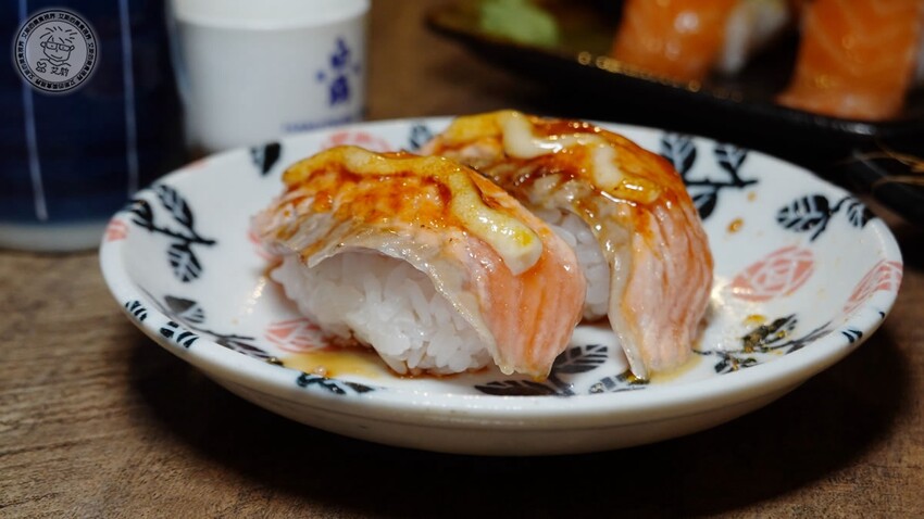 鮭魚上加上醬汁和美乃滋候用噴火槍炙燒,