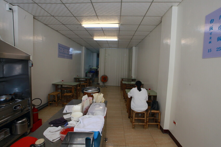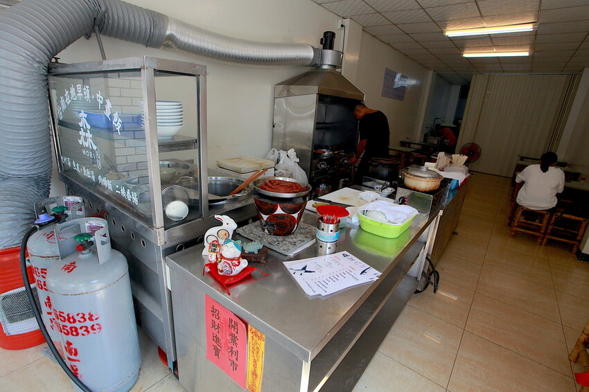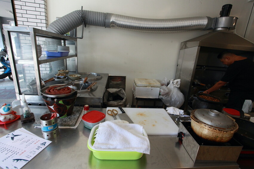 狹窄店面前方擺放料理台沒有過多裝潢。