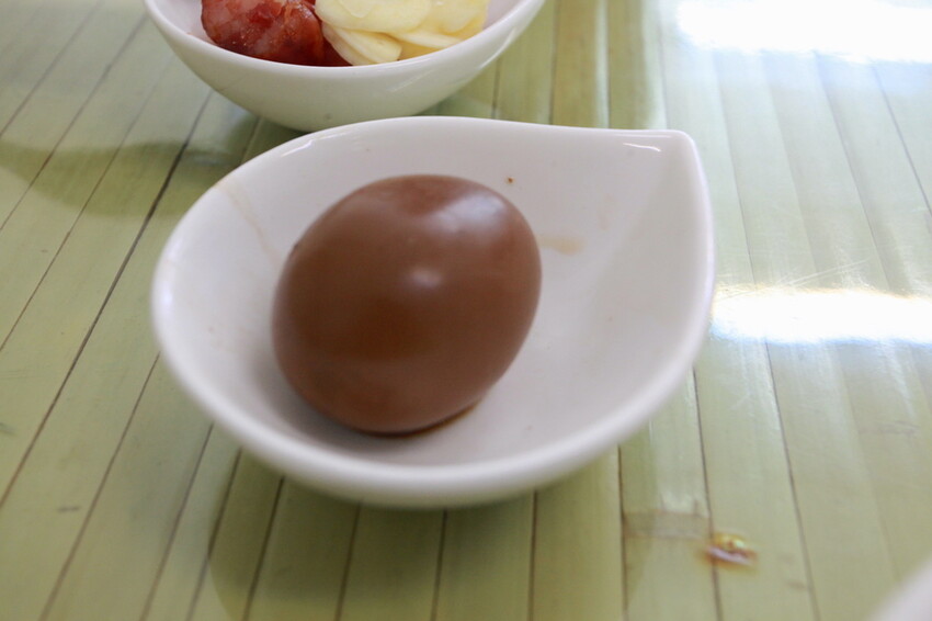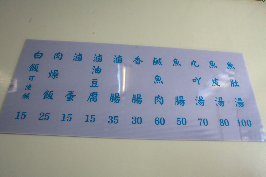 今天點阿嬤肉燥飯25元、白飯10元、滷蛋15元、魚皮湯80元、煨煮魚腸50元及香腸50元(2份)等。