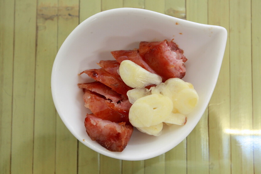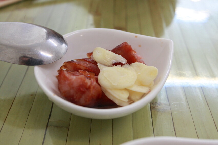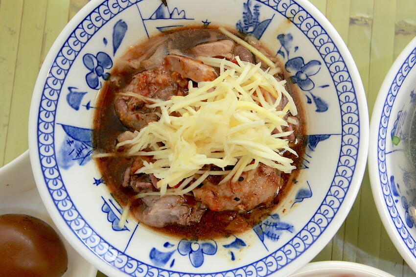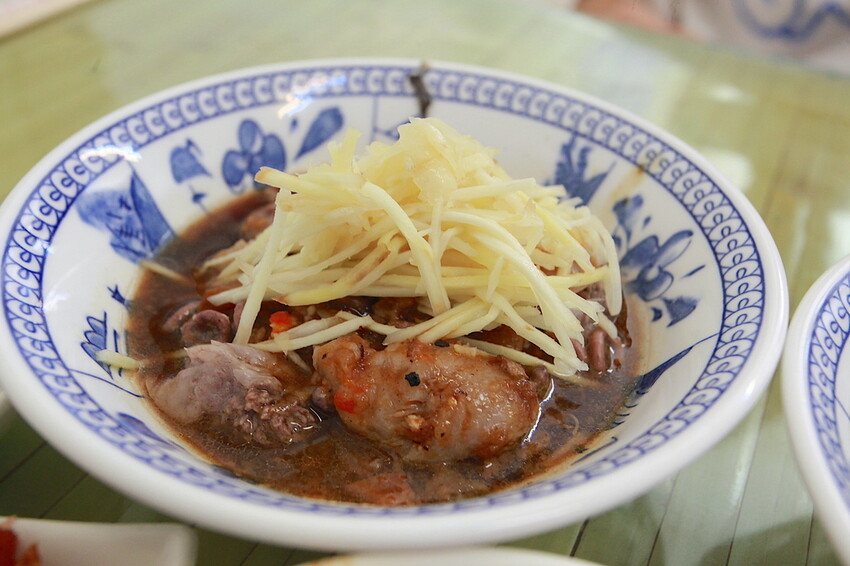 這魚腸料理方式有別於傳統蠻獨特的,採用滷汁煨煮新鮮魚腸至熟,再添加兩樣醬汁提味鋪上薑絲就端上桌,這魚腸鹹香開胃無腥味超好吃