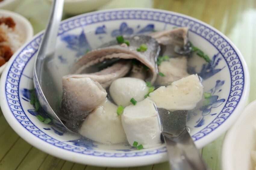 這魚皮湯可搭配台南特色食材一起吃,裡頭有虱目魚皮 、魚冊,花枝丸、汕頭魚丸及脆丸等。