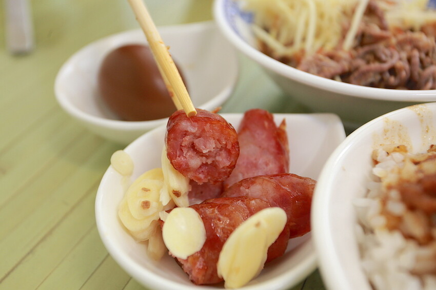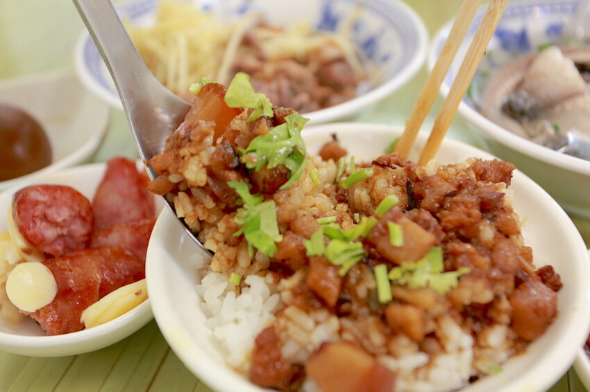 這肥滋滋肉燥吃起來濕黏卻不油膩,與白飯一起吃來鹹香偏甜很好吃