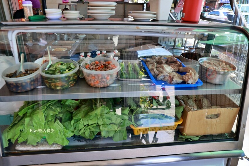 在員林大碗公牛肉麵櫃子裡有很多小菜、蔬菜可以做挑選~