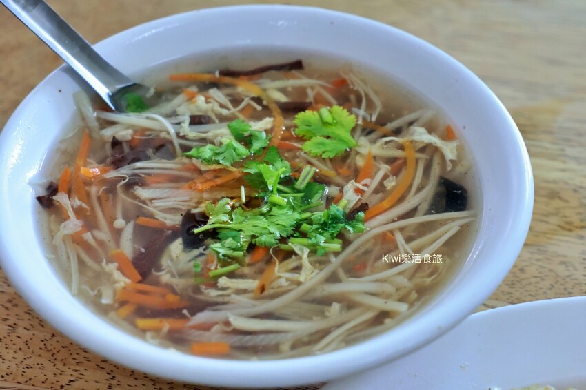 酸辣湯的料也不少,可以自行酌加醋跟辣,香菜滿滿~好香又能提味。
