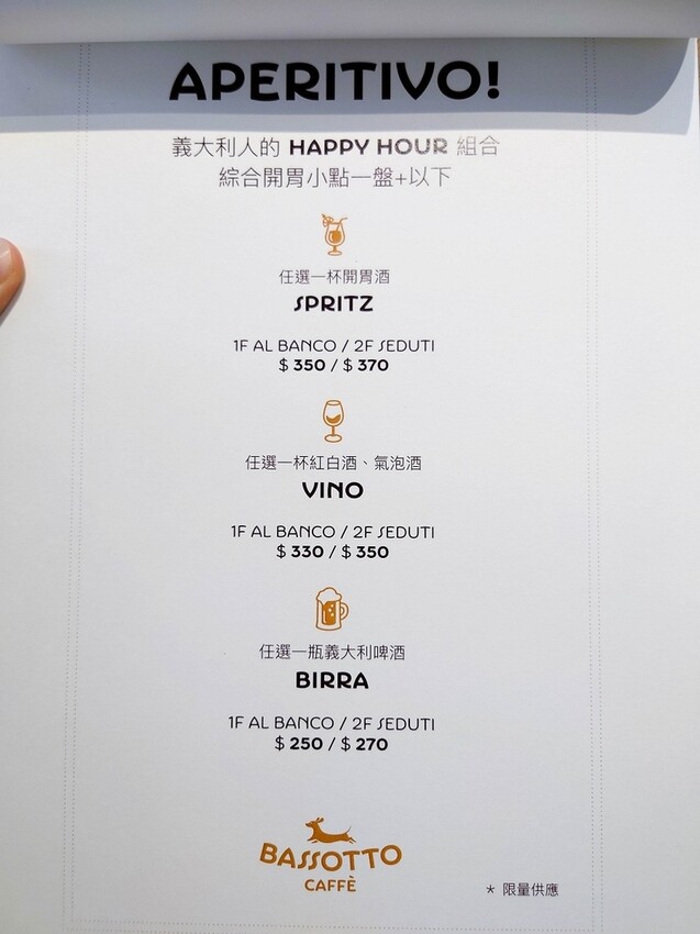 樂天小高食後個人主觀心得分享(僅供參考)(且不保證店家食材品質與安全):「巴索托咖啡館 Bassotto Caffè」用餐空間義式氛圍很舒服,服務很親切,整體口感有水準定價合理範圍,值得樂天小高推薦給您品嚐。