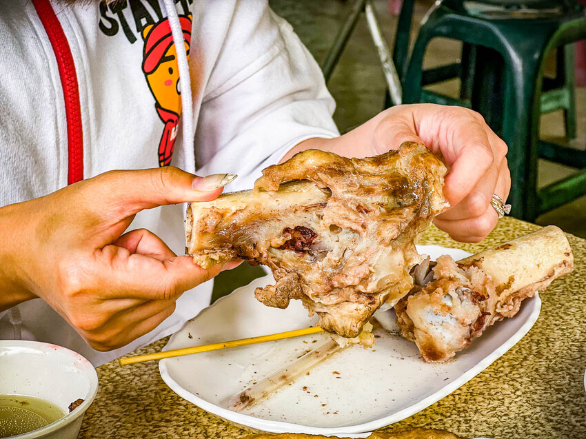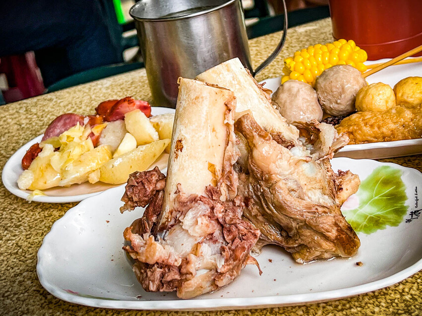 阿雪黑輪個人覺得就看喜歡吃什麼就拿什麼,我是覺得黑輪的味道都差不多,但大骨是一定要點,超大一根肉又很多,而且還有滿滿的骨髓可以吸,兩根60元這麼便宜不點嗎?因為老闆娘很忙,他都叫客人先吃她再過來結帳