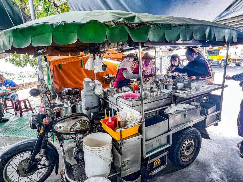 直接路旁的空地擺放餐桌椅,上面拉著遮陽的帆布,就直接擺上桌椅就是內用區,夏天來真的蠻熱的,有時候會有幾隻蒼蠅路過,不過收著擦桌子的動作倒是挺確實的,環境簡陋但不會覺得很髒,生意真的好到爆棚,一有空位就直接補上,一直維持客滿狀態
