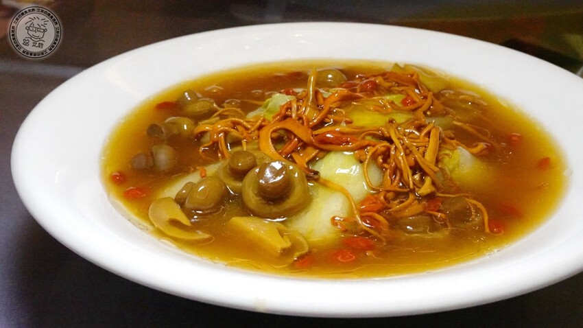 漿蟲草和菌菇類的和飯匙菜還有枸杞甚麼的一起烹煮,