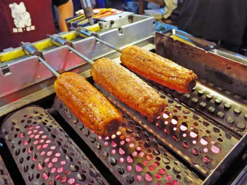 我們當天是傍晚時分才到,天色有些許微暗,這裡是鄉村一般住家的街道,所以不太會有大排長龍的遊客,小攤前面擺了一些的生玉米,可以自己挑選讓阿嬤來烤,秤重量計價,價格平均大概是70-100元之間,我們選的兩支總共是$138元