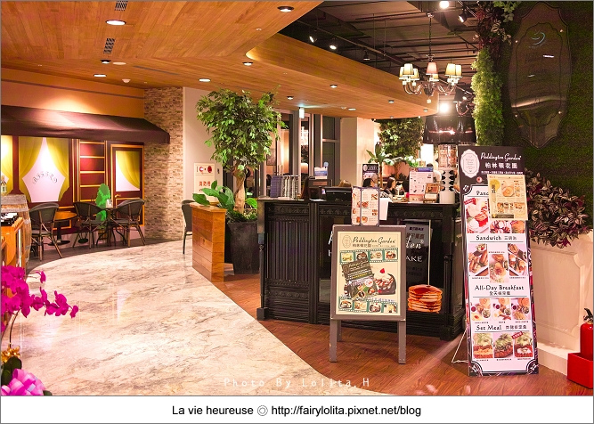 以多種口味鍋煎鬆餅而聞名的柏林頓花園,目前總共有五間分店,它的櫃位在新板誠品生活館裡面,從一樓大門進去,直走到底就可以瞧見了!是說充滿英國鄉村風的裝潢,遠遠地就很有吸晴的效果了:)
