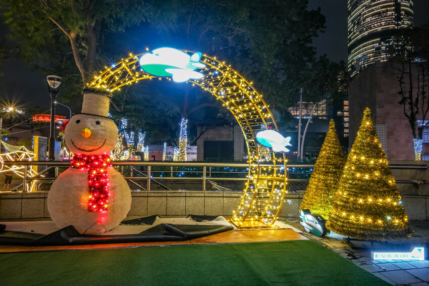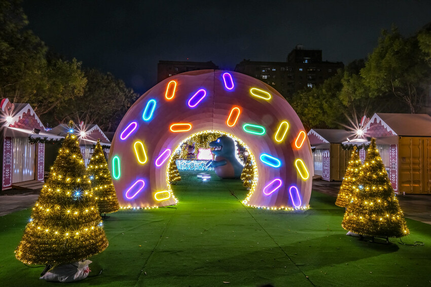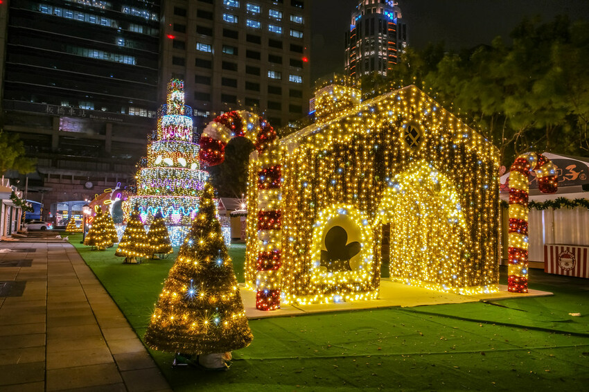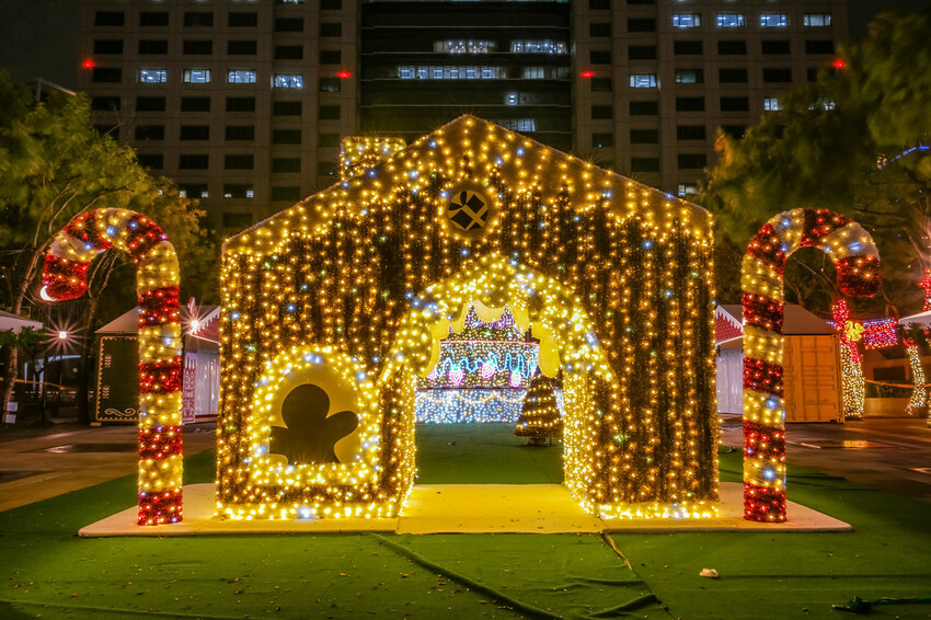 充滿童趣的耶誕元素,使用大型打卡美拍燈光裝置物,結合街道燈光