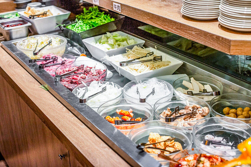自助吧的亮點在這裡,現點現做的料理台,不僅有小火鍋和鐵板燒,還見到很多人都喜歡拿來品嚐。而酥皮濃湯和蛤蜊湯也是其中的熱門選項,真的非常吸引人!