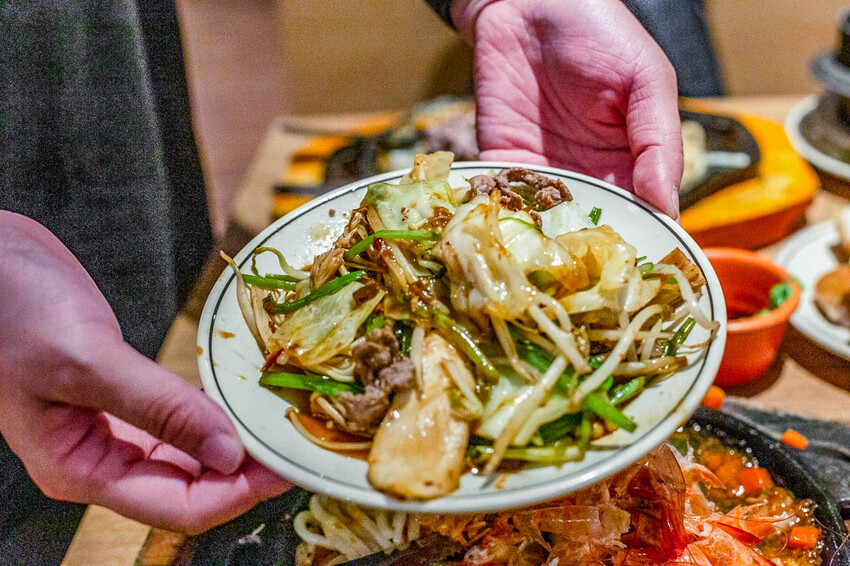 鐵板區真的有些特色,很讓人聯想到蒙古烤肉的風味。選擇菜和肉一起炒,沙茶的味道確實不錯,不過如果你偏好清淡些的口味,那麼疏菜滿滿的小火鍋可能更適合你。蛤蜊湯的味道溫暖而美好,雖然蛤蜊的大小略有所差,但整體感覺還是相當不錯