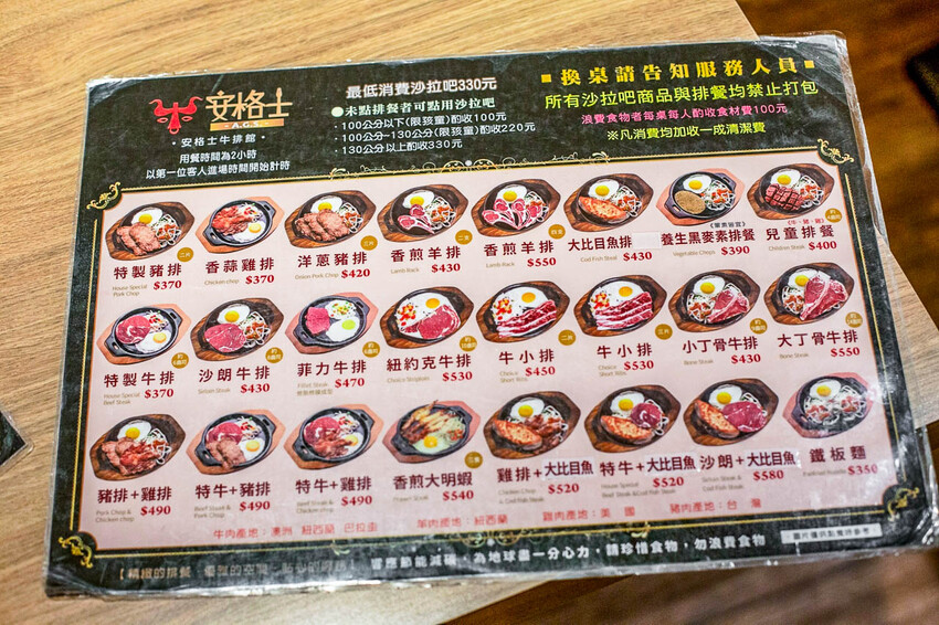 安格士牛排館樹林店|菜單