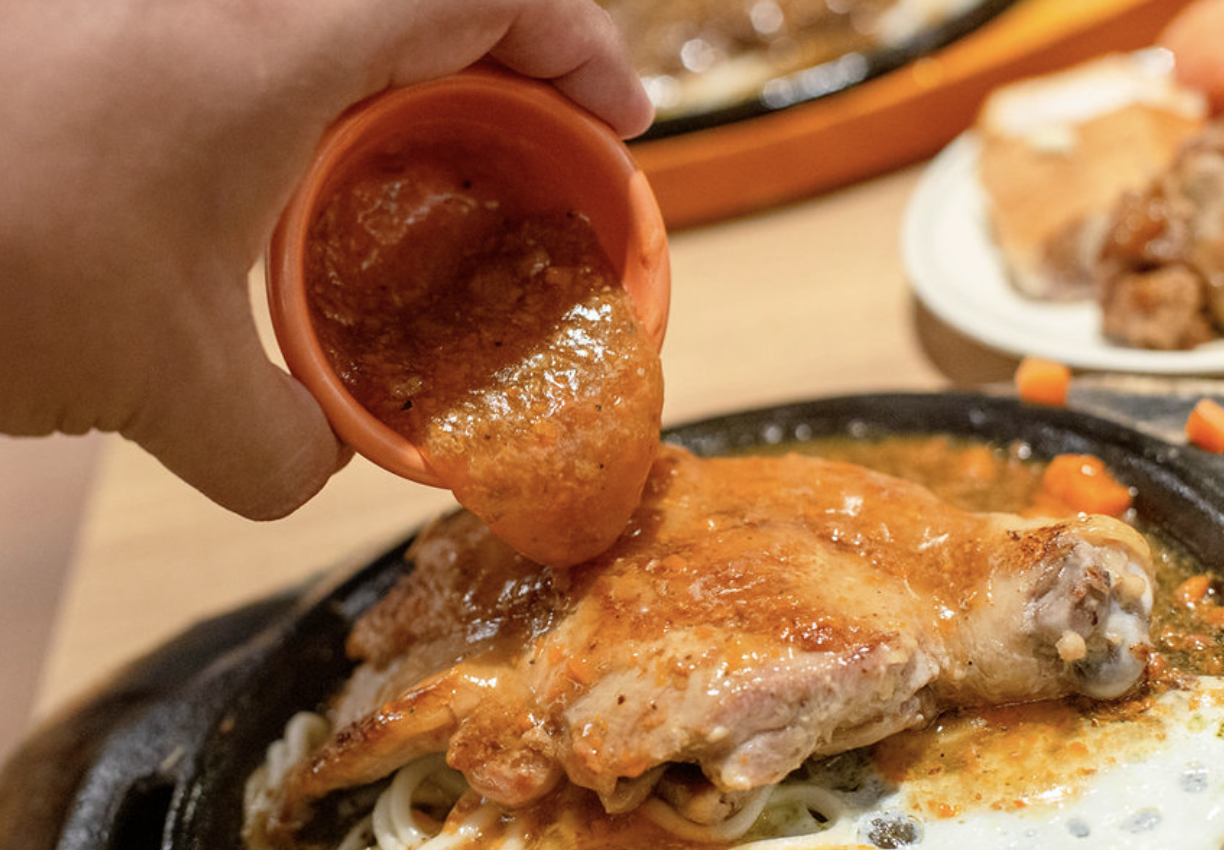 蒜香雞排,也算不錯,自助加40元就能享受到的餐點,那隻雞腿相當豐滿,吃起來肉質頗為細緻,真的挺驚喜的口感滑嫩,而且雞皮保持了一定的酥脆,真的覺得雞腿跟鐵板料理很搭。如果不想吃麵,也可以選擇換成蛋,畢竟吃麵下去實在是頗飽