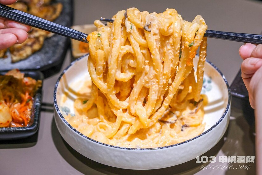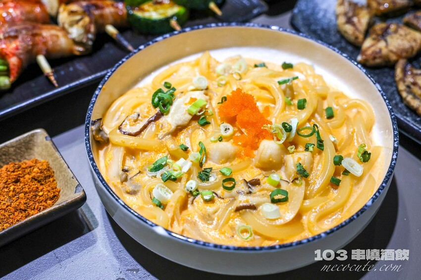 吃居酒屋都必點的明太子料理,這對很好吃喔!有來這推薦必點!奶油白醬加上明太子醬濃郁鹹香,攪拌就聞到香氣,逼逼波波的口感很討喜,烏龍麵Q滑順口,還有香菇和小干貝增添鮮味,整體味道搭配的很棒!