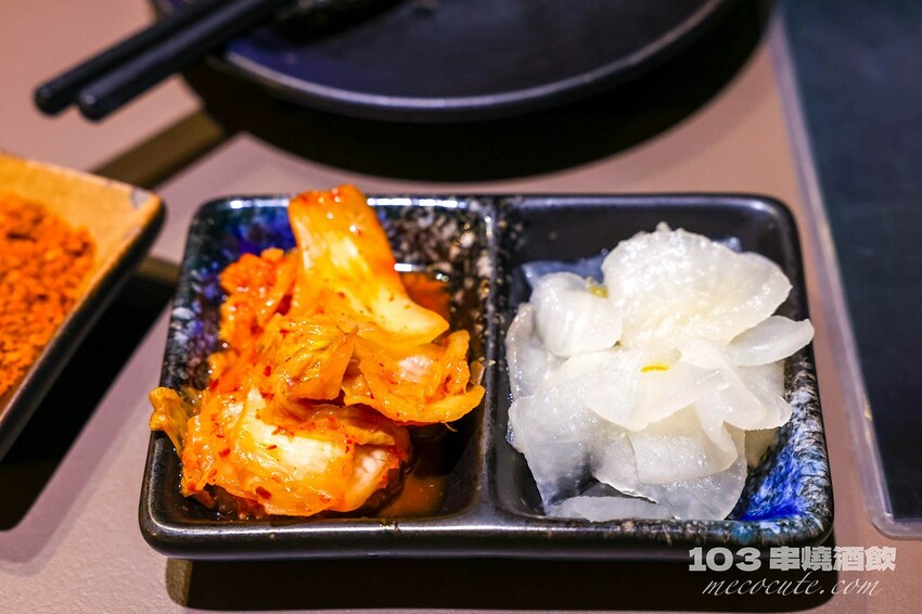 店家招待的小菜,微辣開胃的韓式泡菜還有清爽的柚香蘿蔔。