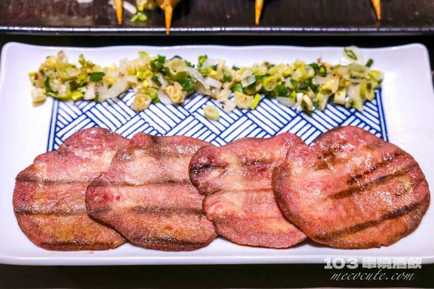牛舌搭配蔥鹽最對味,脆嫩中保有汁感,越嚼越香,這時來一口調酒搭配剛好。