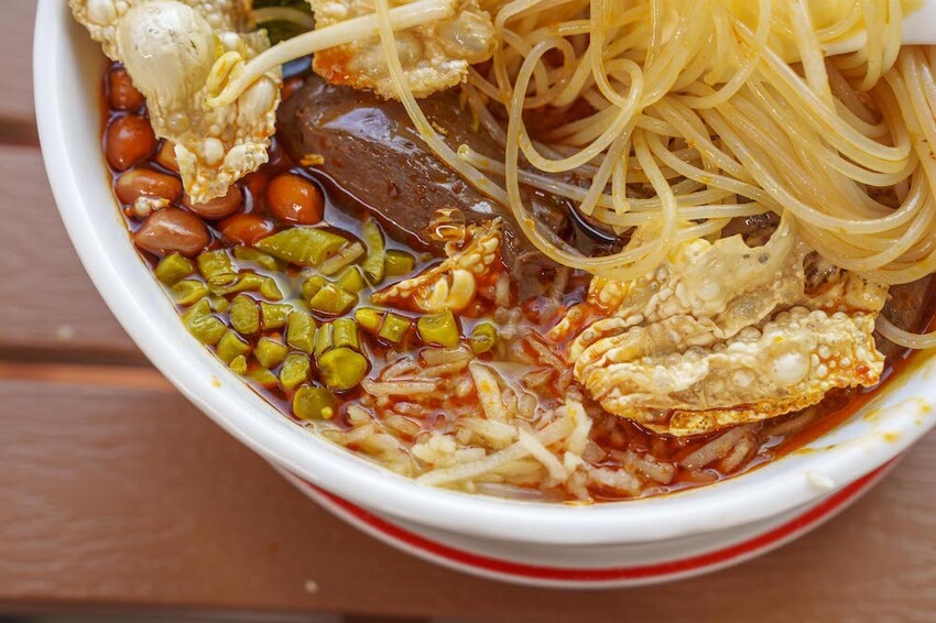 螺螄粉的配料都有酸豆、酸筍、木耳、花生、炸腐竹、鵪鶉蛋、臭豆腐,好多料捏。小匠鴨血螺螄粉推薦給喜歡吃麻辣鴨血的朋朋們,裡面的鴨血很嫩,跟螺螄粉還有其他配料一起入口,真的是味蕾的大大滿足~怪不得店員說這款是超級人氣菜單,領略到其中的迷人滋味了!