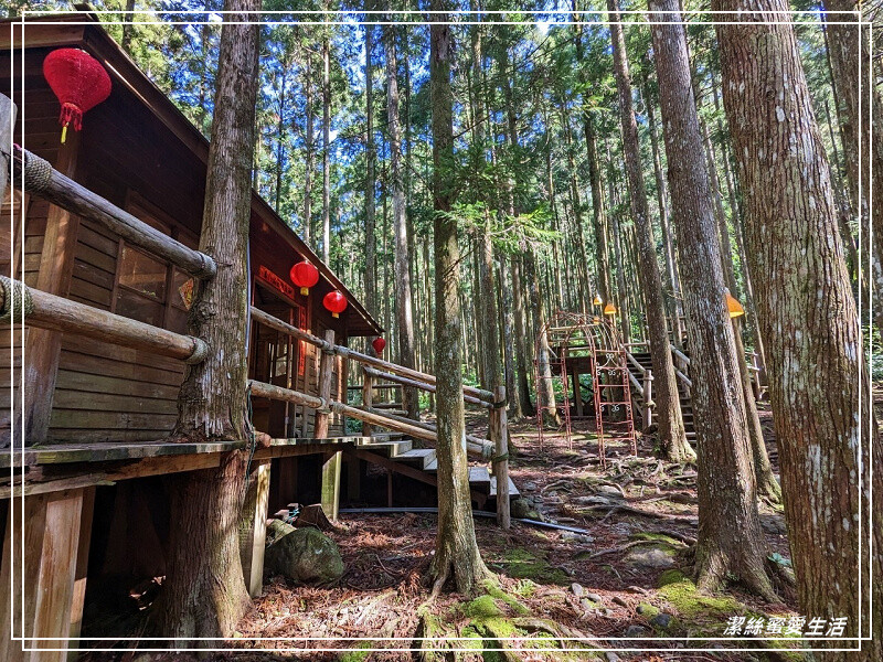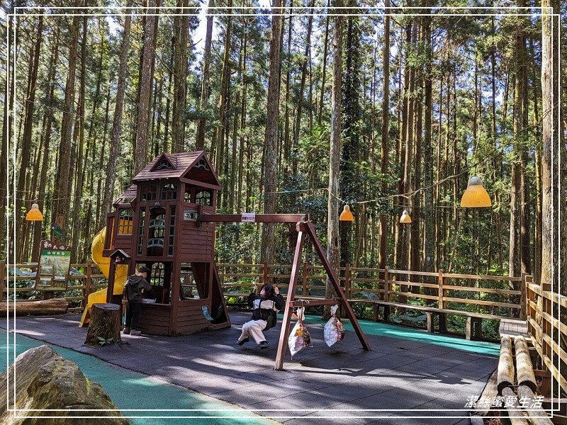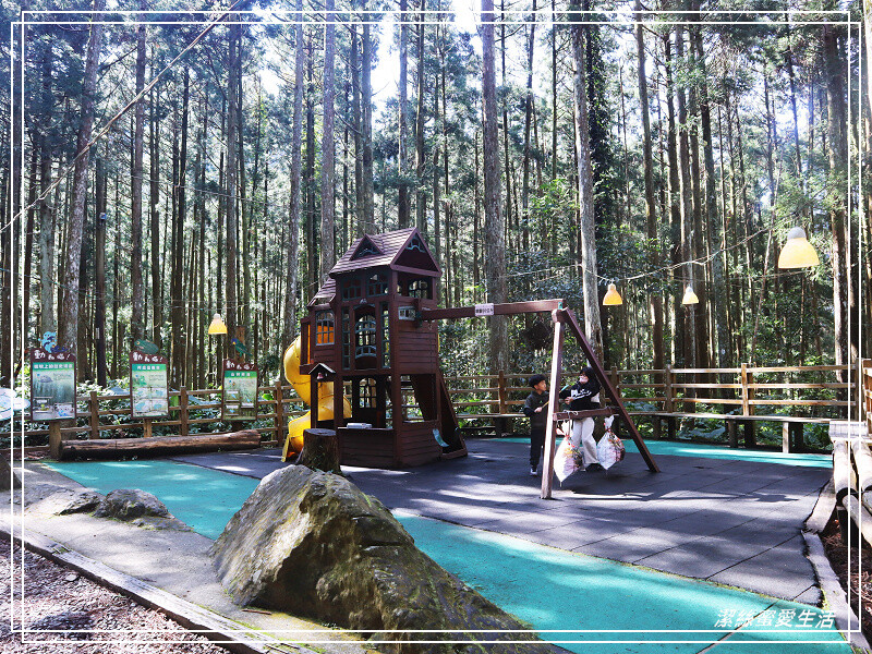 首先看到右邊是一個小小的兒童遊戲區,雖然不大,但在山林中的木造遊樂設施還是有點FU。