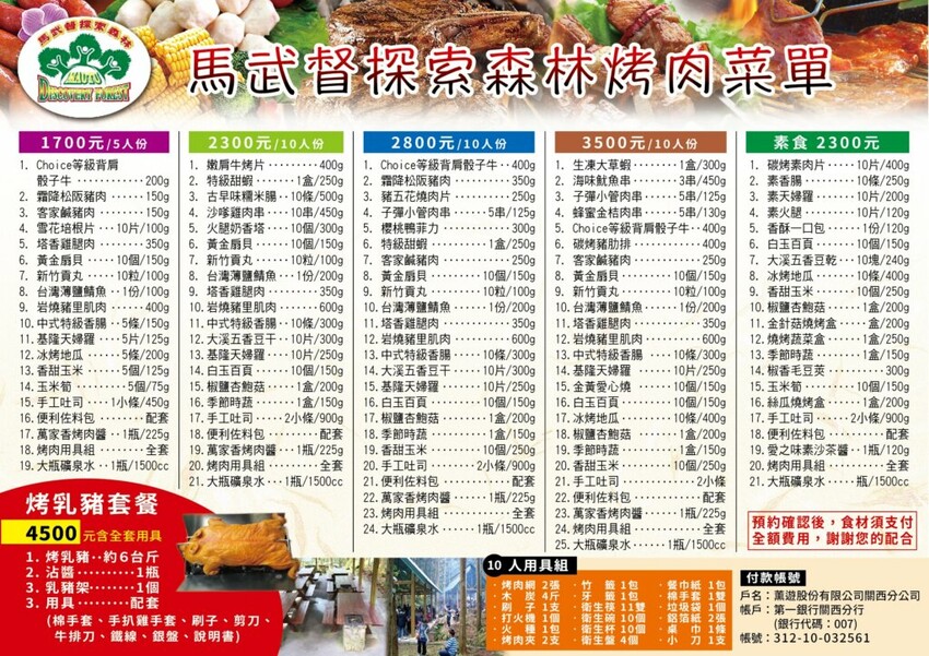 截取自官網的菜單,這是2023年的烤肉菜單,從5人份到豪華澎拜組都有,而且很少見的竟然有素食套餐XD。