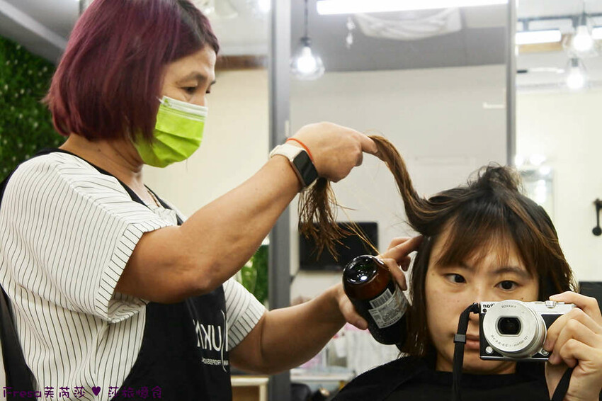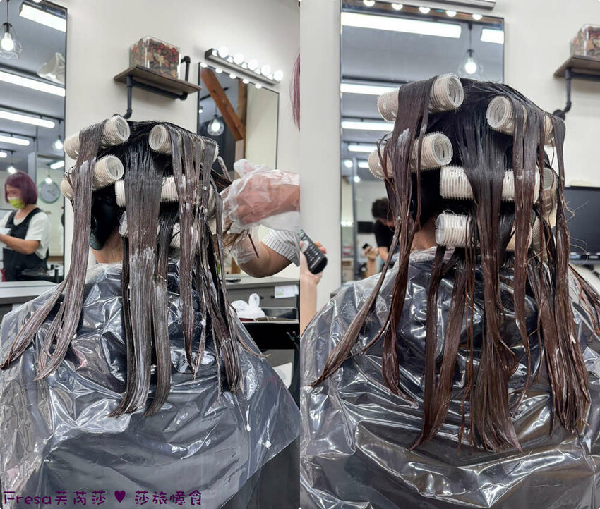剪完頭髮,就會上頭皮隔離霜,先來進行燙直髮.