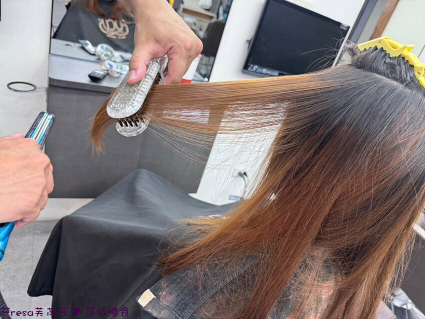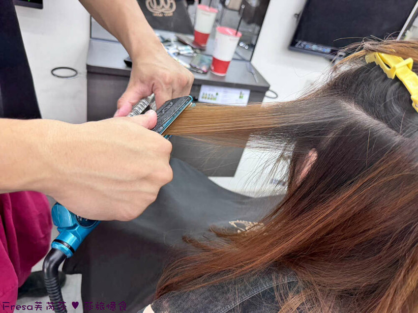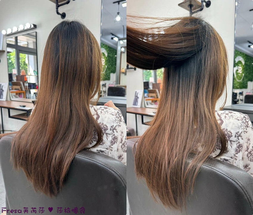 所以搭配燙直髮+染髮,修剪受損髮尾.